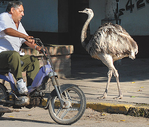 Acompaña a su dueña a realizar las compras, deleita a los vecinos y protege su hogar. No es una mascota convencional pero ya es parte del vecindario. El ñandú "Pimentón" vive hace poco más de tres años en el barrio Obispo Piedrabuena y representa toda una atracción para quienes residen en la zona. Marta, su dueña, afirma que el animal es obediente y que no molesta a los vecinos.