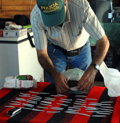 Ayer, el juez Federal Daniel Bejas ordenó que la Policía allanara la casa de “El gordo Santo”. Los oficiales Federico Toledo, Raúl Guaymás y el sargento Pedro Barros requisaron la vivienda; en una de las habitaciones encontraron dos bolsas. Una de ellas contenía 400 gramos de marihuana, mientras que la otra contenía 80 porros. De inmediato los uniformados detuvieron a “La flequilluda”, de 30 años, esposa de “El gordo Santo”, que está prófugo de la Justicia.