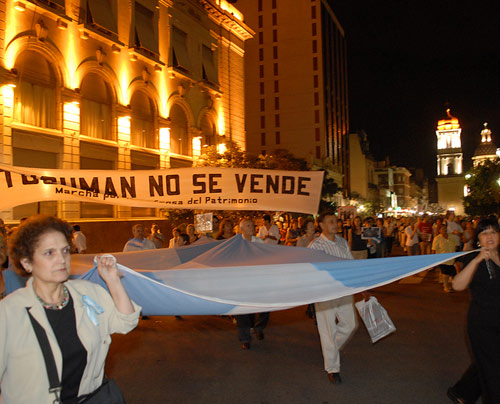 Respecto del mandatario, aclararon que sólo se modificó la Ley 7.990, pero que no fue derogada, como planteó inicialmente Alperovich. En cuanto a Guzman, recordaron que durante el Congreso Argentino de Cultura, realizado en Mar del Plata, firmó un documento para estimular el arte en todas sus formas y proteger el patrimonio tangible e intangible. "Pero ha intentado convencer a la Comisión Provincial de Patrimonio de aceptar la venta de edificios patrimoniales", señala el documento leído durante la marcha.