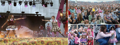Alrededor de ellas circulaban los vendedores, que, con vinchas, gorras, sombreros, guantes, chalecos, polleras y hasta alas de mariposa, conquistaban a la chicas que querían parecerse a sus ídolas. Como Anabela, de 13 años, y Florencia, de 11 años, vecinas y amigas desde pequeñas, que lucían sus brillosas vinchas. "Cuando salimos de la casa las vecinas de enfrente nos gritaban: ¡feas! A nosotras no nos importó, por que ellas se quedaban en su casa y nosotras vinimos a ver a Patito", contaron en pose de divinas.