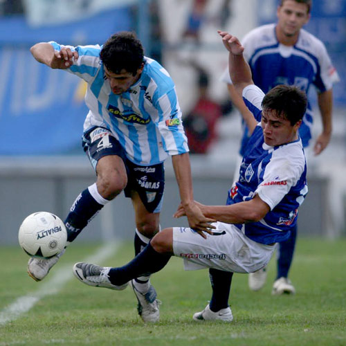 CON LO JUSTO. Montiglio se lleva la pelota, superando el cruce de Aráoz.LA GACETA / ENVIADO ESPECIAL FRANCO VERA