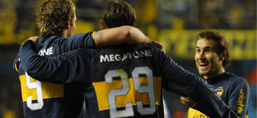 Sobre los 14? Boca aumentó cuando volvieron a juntarse sus tres hombres de ataque, con gran pase de Riquelme para Palacio, que apareció por izquierda y tocó hacia el medio por donde llegaba Palermo para conectar de cabeza arrojándose en "palomita".