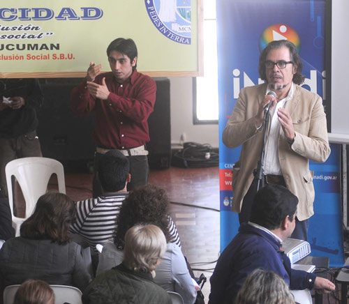 Ramiro Moreno, secretario de Bienestar Estudiantil de la UNT, dijo que la institución ha dado un gran paso al debatir y consensuar políticas integradoras en esta temática. La casa de altos estudios cuenta con apenas 23 estudiantes con discapacidad de un total de 67.000. Agregó que la tarea de la universidad es romper las barreras con las que se enfrentan los discapacitados en el ingreso y en el cursado de estudios superiores.