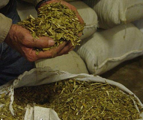 LA COSECHA se realiza desde abril hasta octubre y consiste en cortar las ramas con hojas. Después, se produce la "quiebra" en la que se eliminan los tallos más grandes y se separan los más chicos, que se disponen sobre lienzos de arpillera que luego se atan en los extremos para formar fardos.