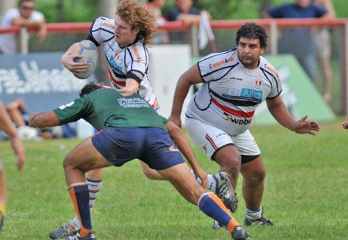 CON LA MARCA ENCIMA. El apertura Juan Palou intenta sortear el tackle rival durante el partido de ayer. LA GACETA / JORGE OLMOS SGROSSO