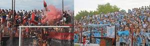 Fueron los hinchas los que aportaron las emociones de la tarde. La barra brava del “celeste”, que trajo hasta instrumentos de viento para alentar, llegó cuando el partido había comenzado. No se habían terminado de acomodar y el club de sus amores comenzó a perder. El golazo de Walter Meija no los calló. Hasta el ex jugador “decano” Claudio Sosa se trepó al alambrado para gritarle a sus amigos que estaban dentro de la cancha que se podía dar vuelta la historia.