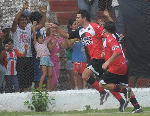FORMULA PELIGROSA. Walter Meija celebra el primer tanto que marco. Lo acompaña José Arce, que lo asistió en el segundo gol que convirtió. LA GACETA/ FRANCO VERA