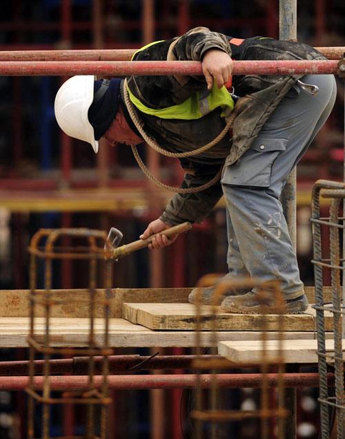 EN LA PENDIENTE. Obreros esperan que el plan anticrisis aliente el empleo.