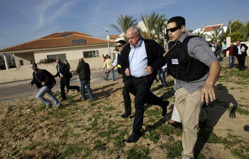 EN PELIGRO. El ministro de Finanzas israelí, Roni Bar, corre hacia un refugio junto con vecinos en Ashkelon. REUTER
