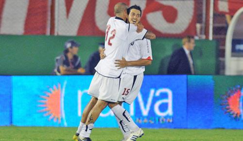 UN ABRAZO INTERMINABLE. Leonel Ríos festeja con Leandro Gioda uno de los tantos que marcó el “rojo”. FOTOBAIRES