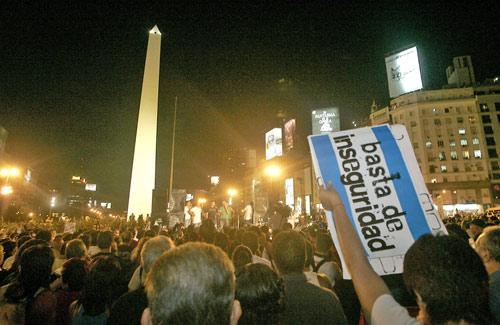 FRENTE AL OBELISCO. El Gobierno sufrió ayer otra manifestación popular durante la que se exigió mayor seguridad y cambios en la legislación. DYN