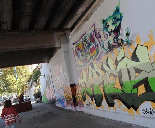 De repente, en vez de “Betty Alperovich” y de “Ariel García”, se lee “Quore”, “Gúo”, “Chars”, “Díoz”, “Mistiz” o “Crazy”. No son los nombres de los postulantes para las elecciones del 28 de junio, tampoco de punteros políticos que promocionen candidaturas. Son, en realidad, los “alias” de un grupo de artistas callejeros que embellecieron los paredones del puente ferroviario de 24 de Setiembre al 1.300.