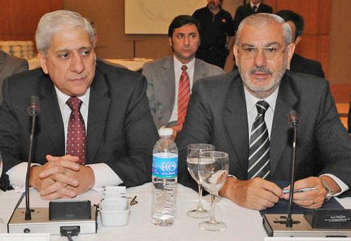 GESTION. El ministro López Herrera (derecha), en una reunión en Buenos Aires. DYN