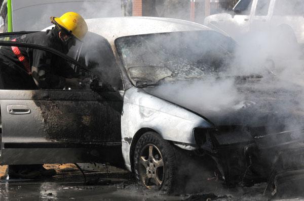FUEGO. Los Bomberos lograron apagar las llamas, pero el vehículo sufrió graves daños. LA GACETA / FOTOS DE JOSE NUNO