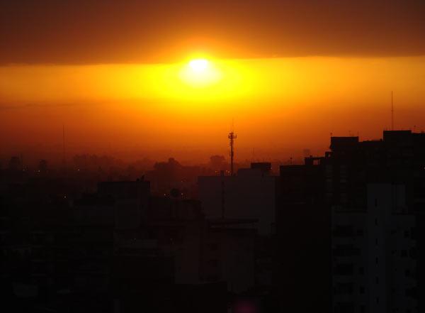 El polvo, el humo y el hollín que cubren a la atmósfera de Tucumán formaron esta mañana un curioso filtro que permitió que los habitantes de la capital miraran de frente hacia el sol, e incluso que lo fotografiaran.