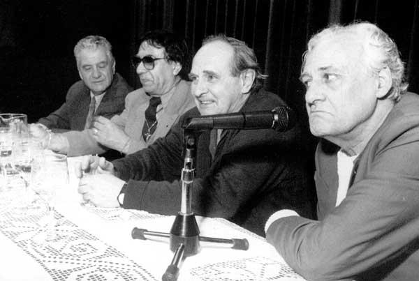 LA REUNION. Pérez Celis, Zaraspe (su fundación organizó el encuentro), Carpani y Linares -de izquierda a derecha- dialogaron con el público tucumano en agosto de 1994.