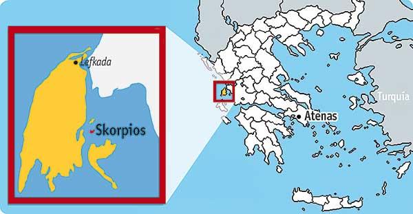 Onassis adquirió Skorpios en 1963 al Estado griego por 60.000 dólares. Allí vivió con la diva de la ópera María Callas, se casó con Jackie Kennedy y fueron enterrados sus restos, así como los de sus hijos.