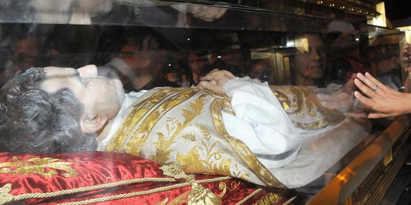 La peregrinación se realiza con motivo de los 150 años de la fundación de la congregación. La reliquia (un hueso del santo) se conserva dentro de una figura de cera del religioso, que es trasladada en un cofre de cristal. La imagen salió el 25 de abril de Turín, Italia, en una visita por los cinco continentes. Los valiosos restos permanecerán en la provincia hasta mañana. El sábado a la madrugada serán trasladados hacia otras provincias.