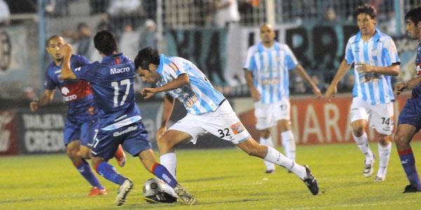 COMO UNA LOCOMOTORA. Juan Pablo Pereyra inicia un ataque de Atlético ante la marca de Matías Giménez, que después fue expulsado. LA GACETA/HECTOR PERALTA