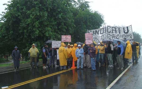 La medida de fuerza contra el Gobierno provincial se realizó bajo una intensa llovizna y se desarrolló en reclamo del pago de un doble aguinaldo de emergencia para fin de año y de un aumento de $ 1.000 para el sector municipal. La organización sindical también exigió el blanqueo del 60% de los ítems en negro de la boleta salarial y la incorporación a la planta de permanentes de los trabajadores que figuran como contratados en comunas rurales.