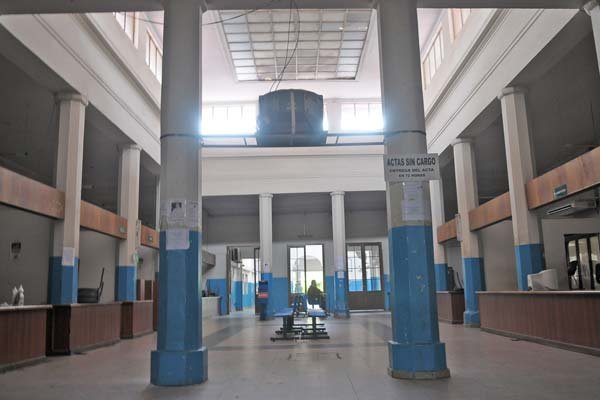 El Registro Civil no operó porque la fuerte lluvia dañó el techo y provocó el desprendimiento del cielo raso. "Con otra tormenta similar la nave principal colapsará por completo", dijo el director del organismo, Dante Loza.