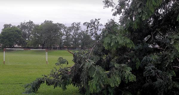 En el complejo "Natalio Mirkin" cayeron árboles y se anegaron las canchas. Resignado, Roldán suspendió la actividad y le dio el día libre al plantel. Hoy volverán a practicar y mañana jugarán con San Jorge.