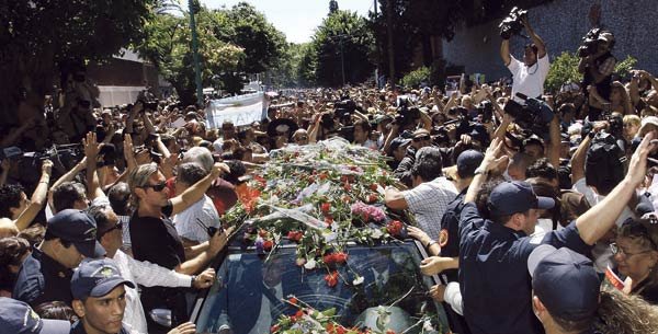 LLUVIA DE ROSAS. El cortejo fúnebre avanzó lentamente a causa de la multitud que pugnaba por tocar el coche. DYN
