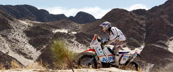 El estatismo de la KTM del italiano disparó la alarma del sistema, a través del cual el equipo de emergencia logró ubicarlo y rescatarlo. El motociclista fue uno de los que alternó en los primeros seis puestos de las primeras etapas, pero ayer se retrasó. También se destacó por ayudar al último campeón, el español Marc Coma, cediéndole un neumático. (Reuters-DPA)