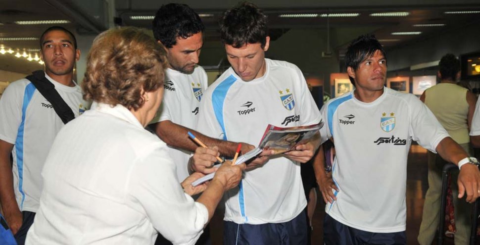 Los "decanos" están listos para afrontar uno de los partidos más esperados. Se espera que miles de hinchas los acompañen hoy en la cancha de Boca. El cotejo comenzará a las 19.15 y se televisará por los canales 7 y 10. Atlético no ganó todavía en el Clausura y necesita puntos para salir de la zona de descenso directo. En la foto, Ischuk y Musto firman autógrafos en el aeropuerto.