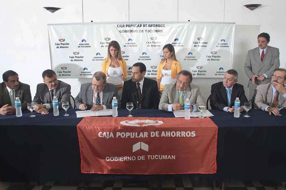 La Caja Popular de Ahorros y Vialidad de la Provincia firmaron un convenio para comenzar con las obras en el óvalo del hipódromo, donde en una primera etapa se construirán canchas de polo y de pato. "Queremos revalorizar el hipódromo para darle mayores entretenimientos a la comunidad", dijo Francisco Sassi Colombres, interventor del ente crediticio. Regino Amado, gobernador interino; Osvaldo Jaldo, ministro del Interior; Julio Dip, asesor de la Caja; y Raúl Basilio, administrador de Vialidad Provincial, entre otros, estuvieron presentes en el lanzamiento del proyecto.