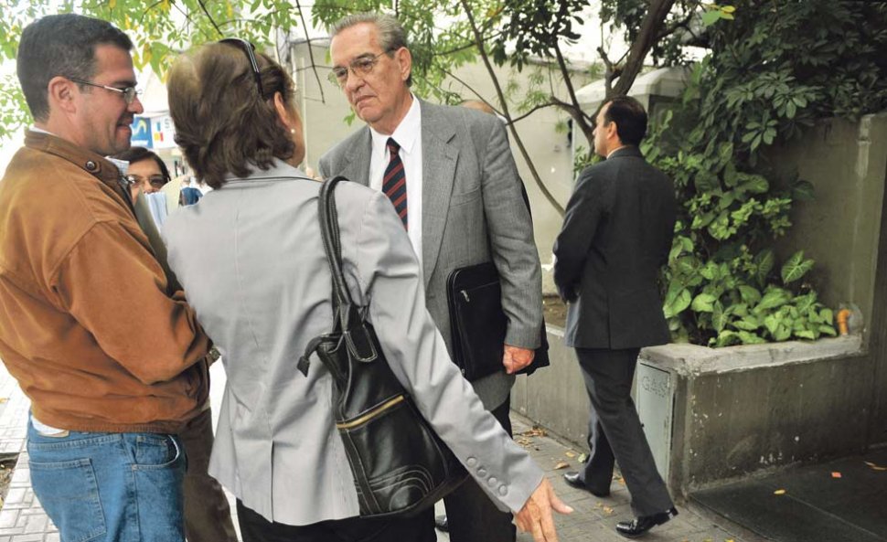 EN UN RECESO. Guerineau (de corbata), uno de los defensores de Menéndez, dialoga en la vereda del Tribunal. LA GACETA / OSCAR FERRONATO
