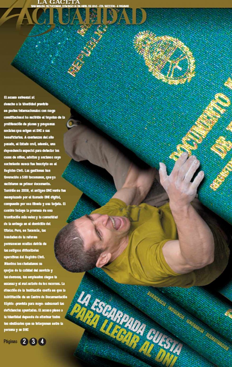 También en 2009, el antiguo DNI verde fue reemplazado por el llamado DNI digital, compuesto por una libreta y una tarjeta. El cambio incluye la promesa de una tramitación más veloz y la comodidad de la entrega en el domicilio del titular. Pero, en Tucumán, las bondades de la reforma permanecen ocultas detrás de las antiguas dificultades operativas del Registro Civil.