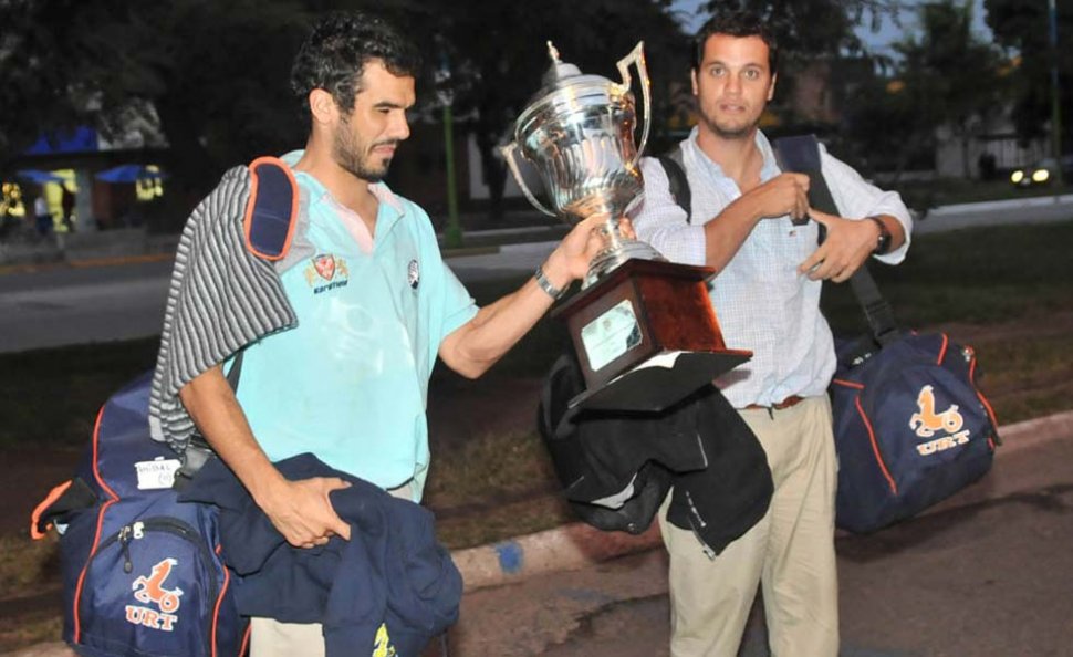 Luego de una noche de celebraciones en Rosario, el plantel tucumano -flamante campeón argentino de rugby- arribó ayer. Aníbal Terán mostró la copa.