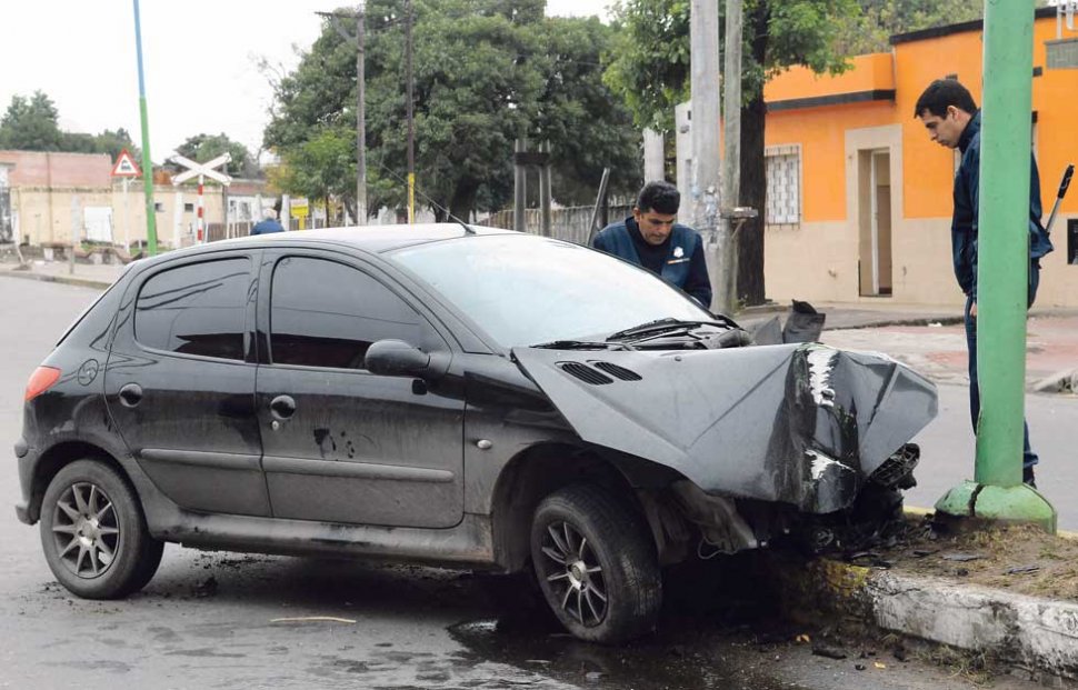 Embistieron un poste y salieron ilesos