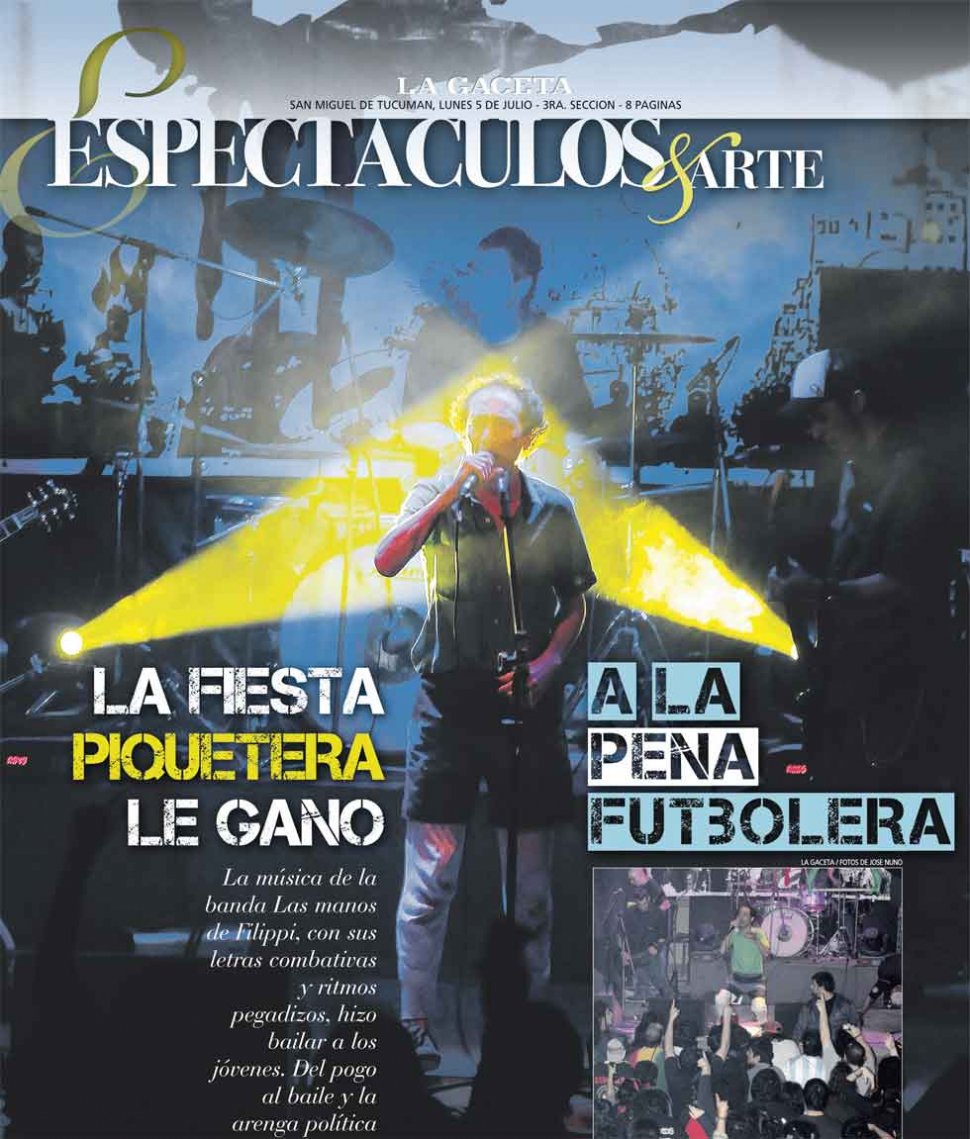 Con el cantante Hernán "Cabra" De Vega a la cabeza, Las Manos de Filippi comenzaron el show desplegando su rock combativo con temas como "I.P.H.G (Insurrección Popular Huelga General)", "Latino" y "Organización". Las canciones, que traducen el carácter contestatario y militante de la banda -De Vega fue candidato a legislador por el Partido Obrero el año pasado -, movilizaron al público tucumano que las cantó saltando de un lado a otro.