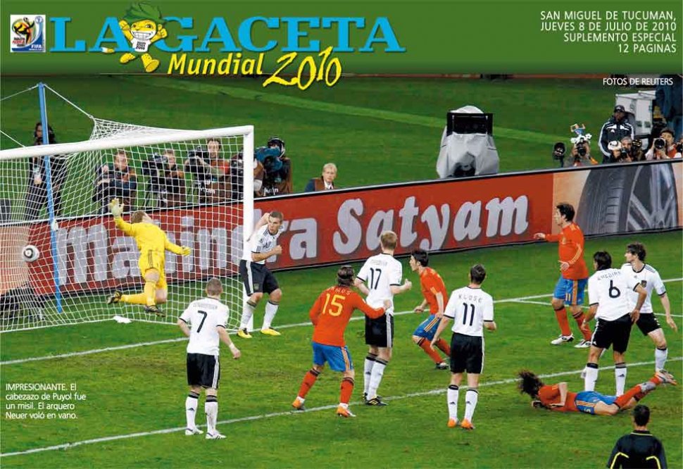 Puyol voló en el área alemana y su cabezazo inapelable resolvió la semifinal. La victoria por 1 a 0 clasificó a España para la gran definición contra Holanda, el domingo en Johannesburgo. El que gane obtendrá la Copa por primera vez e ingresará al selecto club de los campeones. Alemania y Uruguay jugarán por el tercer lugar.