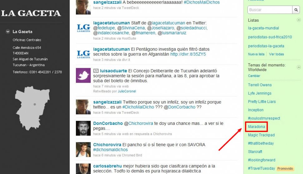 Los "twitteros", a contramano de lo pasa en Facebook, pertenecen en su mayoría al bando de los los anti-Maradona. LA GACETA ©