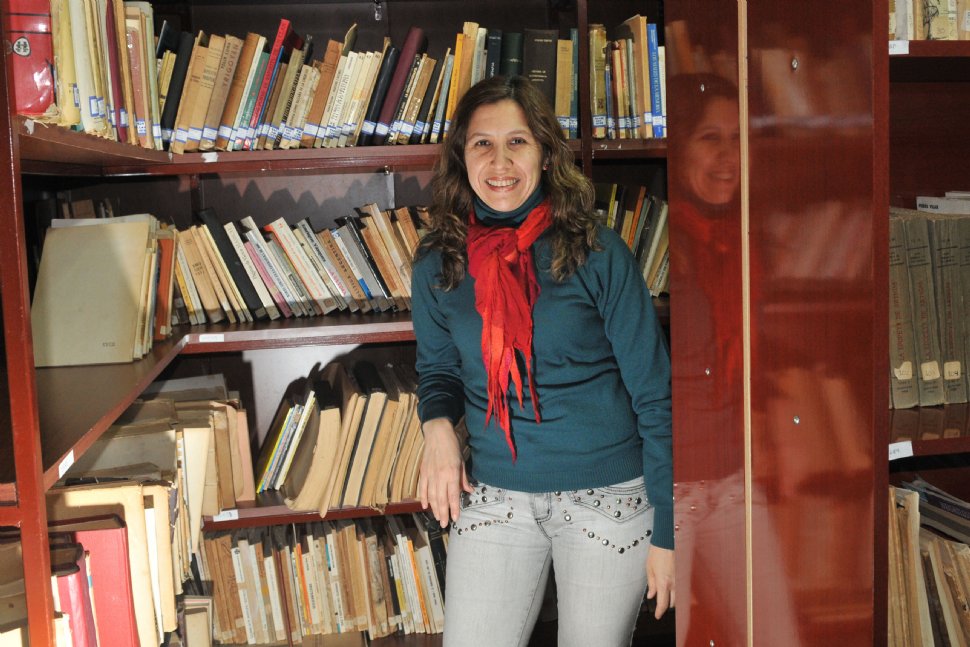 EN EL LUGAR DE TRABAJO. Fabiola Orquera, la editora y coordinadora de la obra, en el ISES.