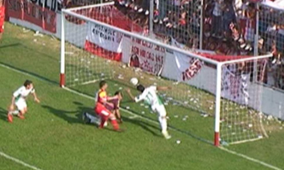 La polémica jugada nació en un centro pasado de Federico Lértora que Juan Manuel Herbella devolvió al medio del área.La pelota le cayó a Carballo, que la punteó directo al travesaño. Marcos Gutiérrez fue a buscar el rebote y desde el suelo intentó manotear el balón para alejarla de la zona de peligro. Al mismo tiempo Abán se lanzó en palomita, y como no pudo cabecear, devolvió la pelota con la mano izquierda hacia el centro del área. "Anguila" quedó a mitad de camino. Ante la desesperación de Leandro de Muner, que no alcanzó a intervenir en la jugada, Carballo marcó con un cabezazo.