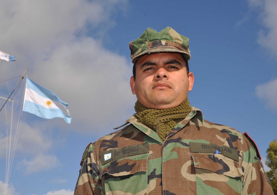 La Argentina contribuye al mantenimiento de la paz y seguridad aportando un hospital reubicable, un grupo de helicópteros y la formación del Batallón Conjunto Argentino: 500 hombres entre Ejército, Fuerza Aérea y Armada, de los cuales 170 son marinos. Uno de ellos es Jorge Adrián Brandán.