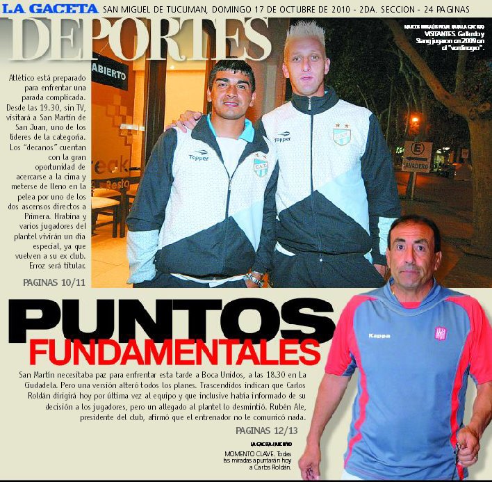 Por otro lado, trascendidos indican que Carlos Roldán dirigirá hoy por última vez al equipo y que inclusive había informado de su decisión a los jugadores, pero un allegado al plantel lo desmintió. Rubén Ale, presidente del club, afirmó que el entrenador no le comunicó nada.