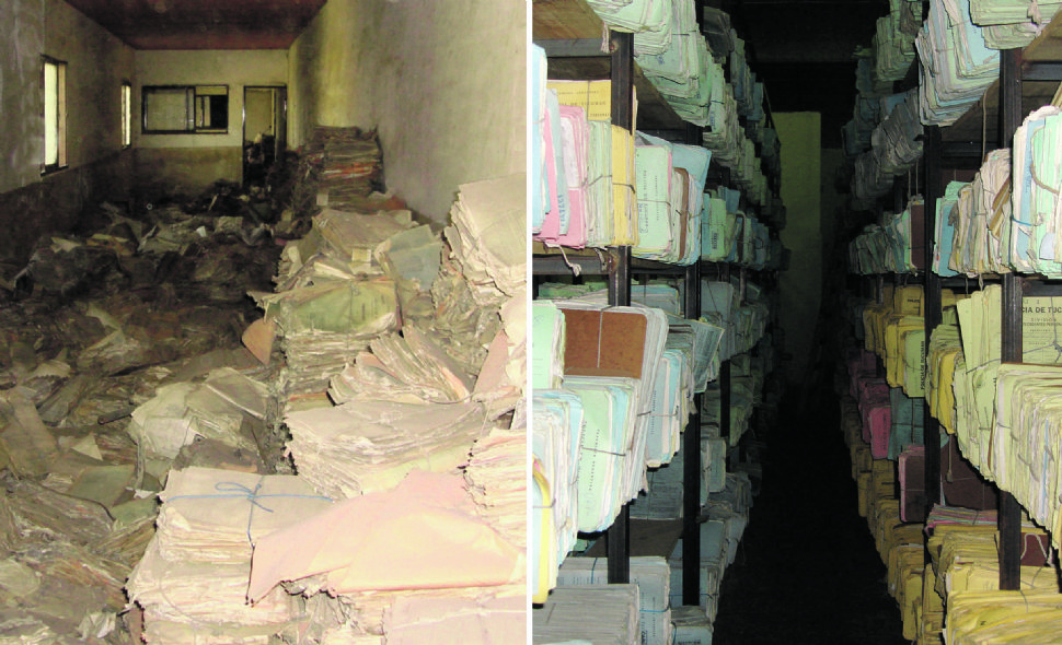 ANTES Y DESPUES. En la imagen, cedida por el Gobierno, se advierte el estado en el que estaba la División Antecedentes hasta 2008 y ahora. GOBIERNO DE LA PROVINCIA