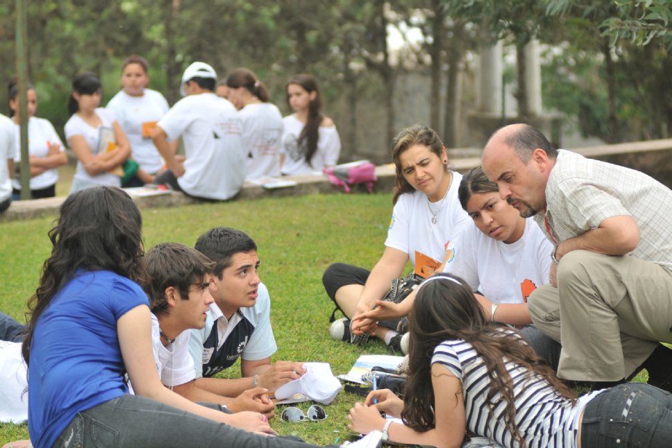 En esos espacios debaten bonaerenses y tucumanos, guiados por un coordinador que lanza consignas e hipótesis para iniciar el debate. Tirados en el césped, o ubicados en los salones de los hoteles, los chicos se distribuyen en grupos de seis o siete integrantes. Cada albergue funciona como sede de un taller donde participan grupos de hasta 60, bajo la consigna central: "Los adolescentes de las provincias de Tucumán y Buenos Aires participan y trabajan por una mejor escuela secundaria". Inclusión, salud, política y tecnología fueron los ejes temáticos.