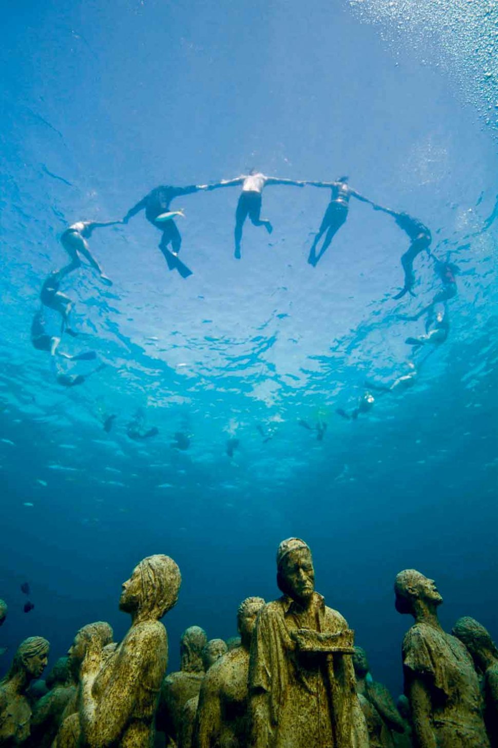 Las fotos de Greenpeace sorprendieron ayer. Imágenes tomadas debajo del agua y difundidas sólo para la difusión de la prensa causaron gran impacto. Las fotos muestran una instalación submarina que se denomina "Silencio Evolución". Esta obra artística que al mismo tiempo se constituye en una protesta está a cargo de esta organización que se movilizó en contra de la política de medio ambiente que vienen teniendo los principales países del mundo. Con esta muestra acuática efectuada en Cancún reclaman así que la Organización de las Naciones Unidas actúen cuánto antes. (Reuters)