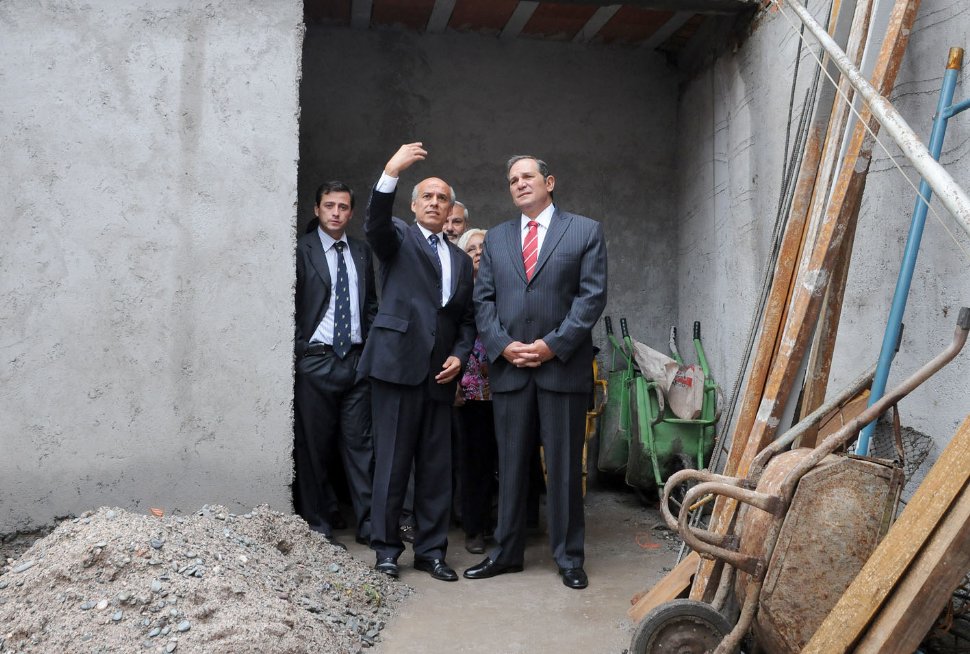 EN TAFI VIEJO. El intendente Javier Pucharras le enseña las obras de la Casa de la Cultura al gobernador. PRENSA Y DIFUSION