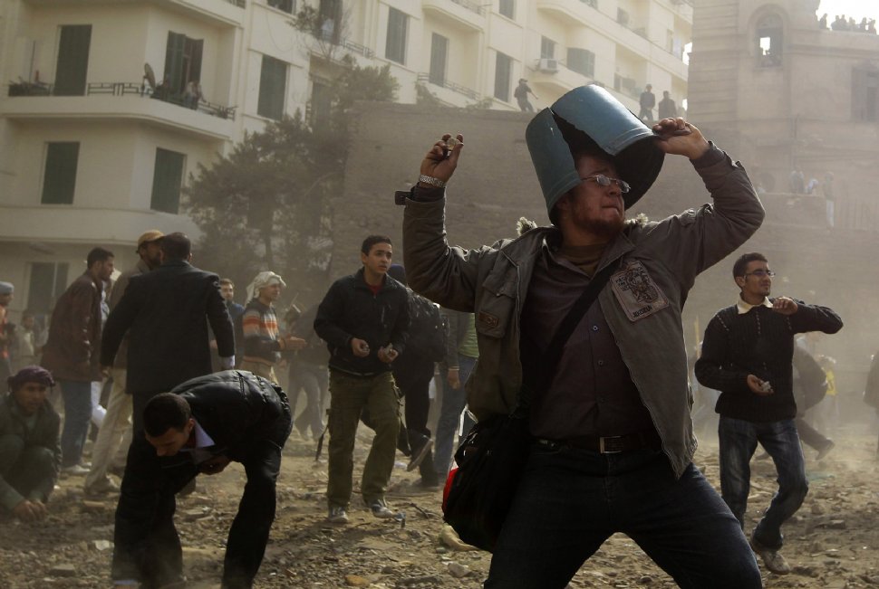 A LAS PEDRADAS. Hasta un balde de plástico sirve para protegerse y agredir. REUTERS A LAS PEDRADAS. Hasta un balde de plástico sirve para protegerse y agredir. REUTERS