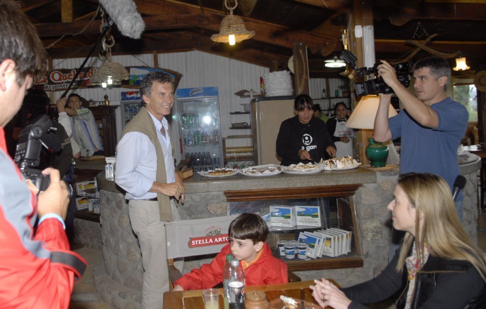El aroma del café, el calorcito del horno y el sabor de las tartas artesanales se mezclan en el salón de La Quebradita, en Tafí del Valle, donde esperan a Mauricio Macri. El líder del PRO viene desde Salta por vía terrestre en un viaje en el que busca reforzar la campaña del PRO. Alrededor de las 17, llega al local, donde un centenar de personas aplaude su ingreso, mientras el jefe de Gobierno porteño dice que va a probar algo dulce. "Soy un experto en dulces", aclara como advirtiendo que examinará el producto tucumano. Algunas mujeres lo rodean para una foto con el celular, mientras un niño pregunta: ¿quién viene mamá?... "Es Mauricio, ¿te acordás que estaba en Boca?, dice la mujer.