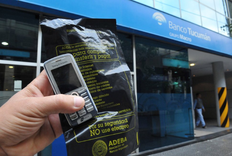 Con un poco de duda, en algunos casos utilizando bolsas de papel a la espera de la de plástico, lentamente, comenzó a implementarse el control del uso de los celulares en los bancos. Por ahora, esta iniciativa destinada a mejorar la seguridad y evitar las "salideras" bancarias, se puso en marcha entre las entidades vinculadas a la Asociación de Bancos Argentinos (Adeba), es decir: los bancos Macro, Tucumán, Galicia, Industrial, Supervielle, Hipotecario, Comafi y Patagonia, entre los que cuentan con sucursales en la city tucumana. Adeba firmó un convenio con el Banco Central para su implementación, como parte de la campaña para evitar el uso del dinero en efectivo. La Asociación de Bancos de la Argentina (matriz extranjera) y la Asociación de Bancos Públicos y Privados de la República Argentina (Abappra) aún no decidieron embarcarse en esta política.