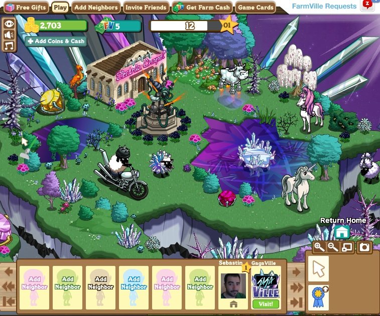 CALIFORNIA, Estados Unidos.- Un videojuego ya conocido en la red social Facebook, incluyó en sus filas a la controversial artista Lady Gaga. "FarmVille", de la firma Zynga, pactó con la estrella del pop para construir su propia aldea dentro de la plataforma.