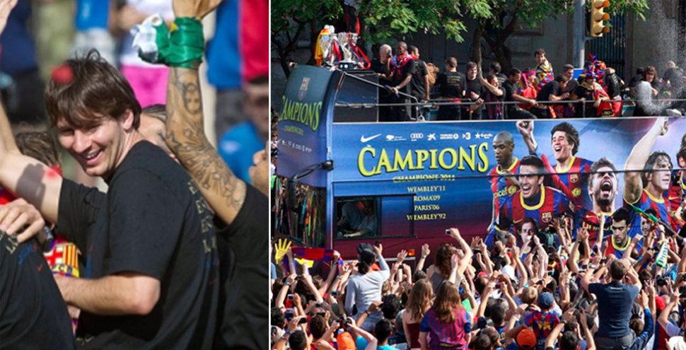 BARCELONA, España.- Luego de recorrer las calles de la ciudad con la copa de Liga de Campeones de Europa, los jugadores y el cuerpo técnico de Barcelona terminaron el festejo en el Camp Nou. Allí, una multitud de hinchas los recibió y, luego de dar una vuelta por el césped, algunos jugadores se animaron a hablar por los altoparlantes del estadio, según publicó el diario español "El País".